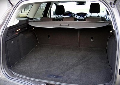 Focus kombi jest jednym z największych w swojej klasie. Linia dachu nie opada tak mocno jak w hatchbacku dzięki czemu z tyłu jest więcej miejsca. Pojemność bagażnika wynosi 503 litry a po złożeniu foteli: 1546.